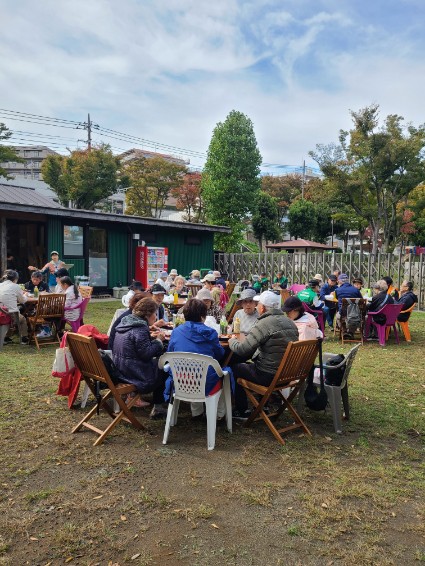 川沿いを歩くコースでは、泉公園を出発し、鶴見川・谷本せせらぎの道をウォーキングしてコミハまで戻ってきました。総勢58名の方が参加し、川沿いのコスモスを観賞したり、皆さんでわいわい会話を楽しみながら、全員が完走。その後の昼食会では、コミハ前の憩いの広場で、まい泉の「いろいろ弁当」を堪能しました。