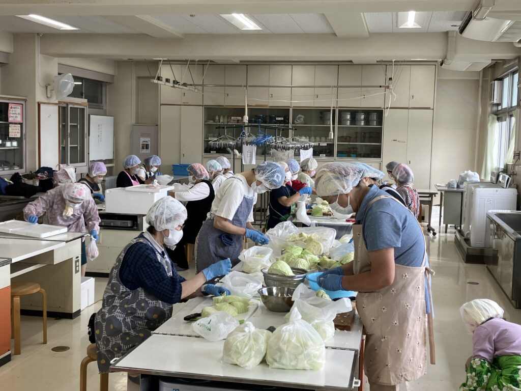 販売時間が変わったため、準備も一部の食材を前日に用意し学校の家庭科室に運び込み、当日は朝の8時半から作業を始め、昼の販売に間に合うよう準備を進めました。また、昨年から焼きそばの鉄板焼き台を2台から3台に増やし、下準備の効率化を図るなどし、待ち時間を最大で30分程度に抑えることができました。