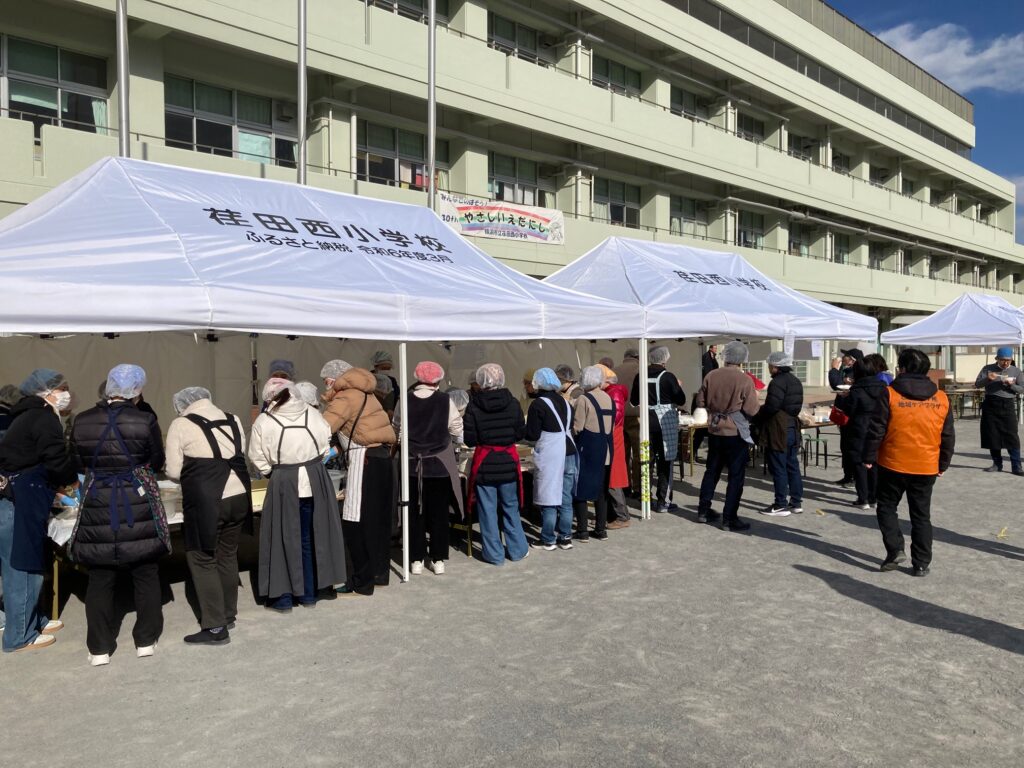 荏田西地区社会福祉協議会主催の餅つき大会が1月11日日曜日に荏田西小学校グランドで開催されました。初めての日曜日開催でしたが、多くのお客様にご来場頂きました。天気は晴れで気温も平年並みでしたが、風が強く時々突風も吹き付ける状態でした。